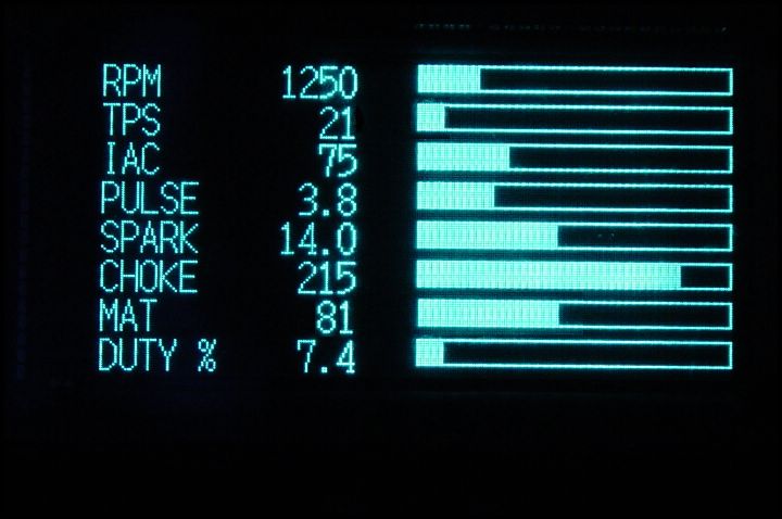 This screen shows 8 user defined BAR GRAPHS, Each graph fills from left to right as values increase. Bar Graph updates are in real-time. In this screen, all values come from C950 via serial port. Graph positions and labels are user configurable.